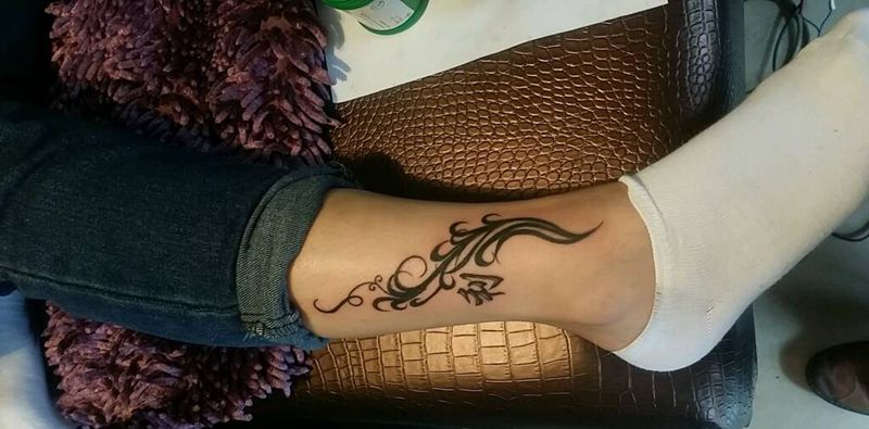 当前位置: 首页 >山西省太原市纹身店-太原翼龙刺青工作室纹身图案>脚踝小图腾纹身图片_腿部脚部清新植物图腾成品纹身图案