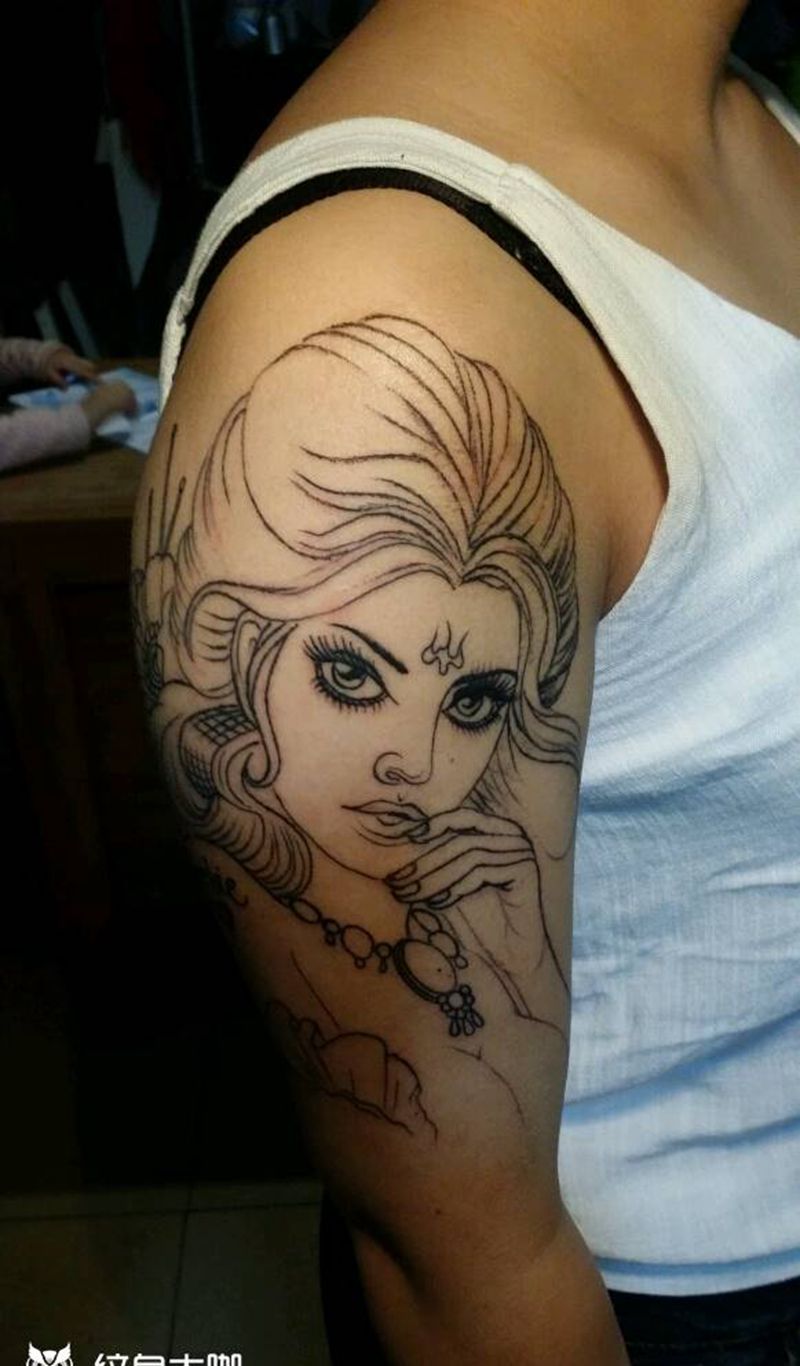 欧美美女纹身图片_肩部手臂腿部欧美肖像人物纹身图案