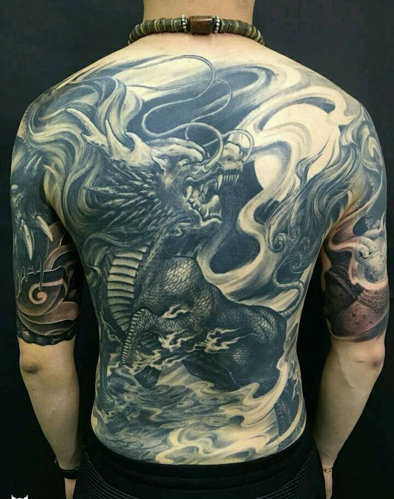 • T云龙九郎纹身图片_背部老传统云龙九郎纹身图案