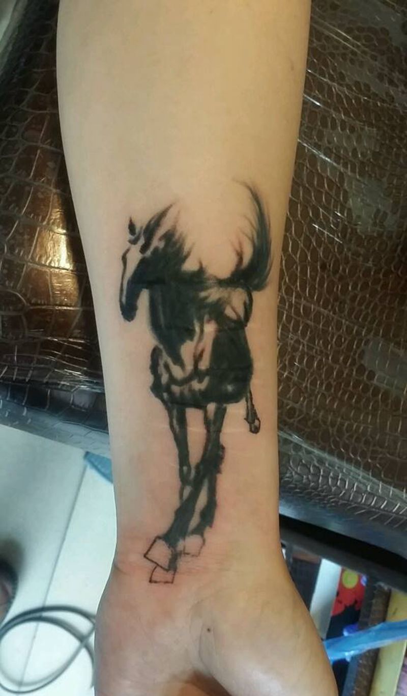 当前位置: 首页 >山西省太原市纹身店-太原翼龙刺青工作室纹身图案>徐悲鸿的马纹身图片_肩部手臂腿部传统动物成品纹身图案