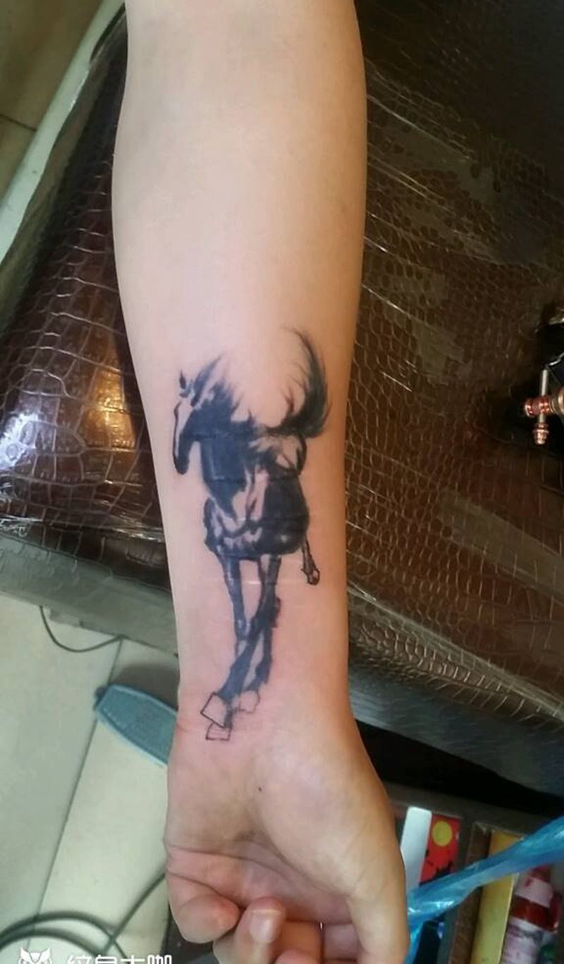 当前位置: 首页 >山西省太原市纹身店-太原翼龙刺青工作室纹身图案>徐悲鸿的马纹身图片_肩部手臂腿部传统动物成品纹身图案