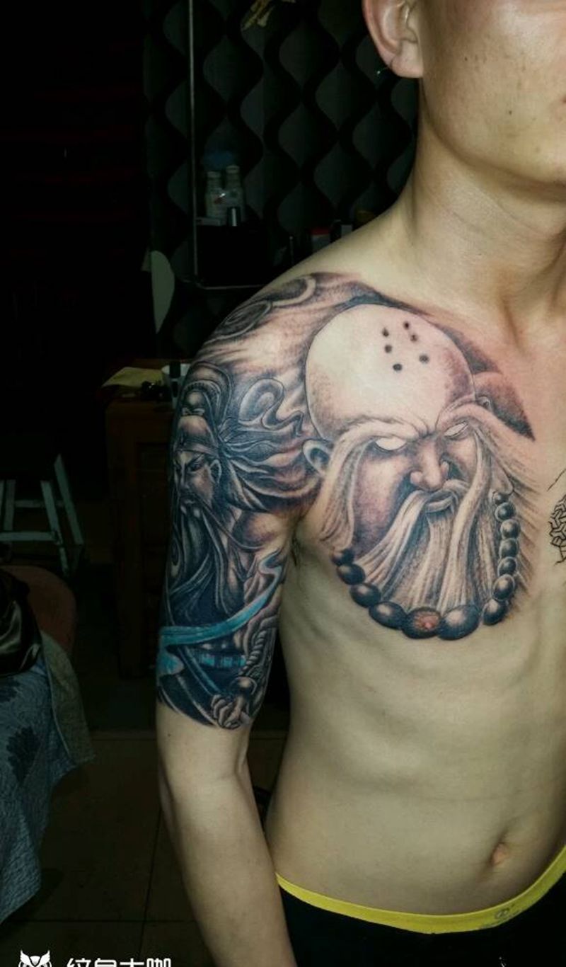当前位置: 首页 >山西省太原市纹身店-太原翼龙刺青工作室纹身图案>心中有佛半甲纹身图片_肩部胸部手臂传统习俗宗教纹身图案