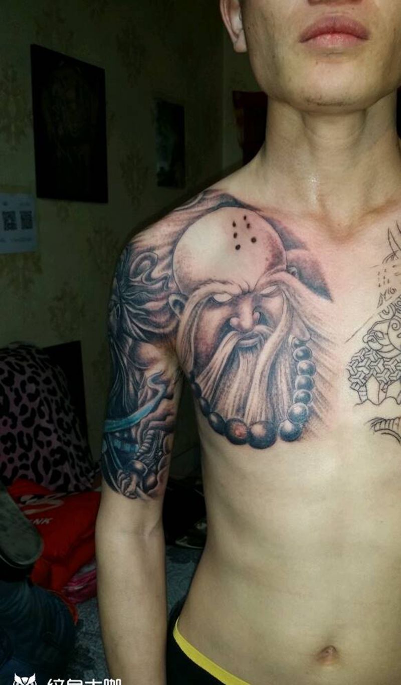 当前位置: 首页 >山西省太原市纹身店-太原翼龙刺青工作室纹身图案>心中有佛半甲纹身图片_肩部胸部手臂传统习俗宗教纹身图案