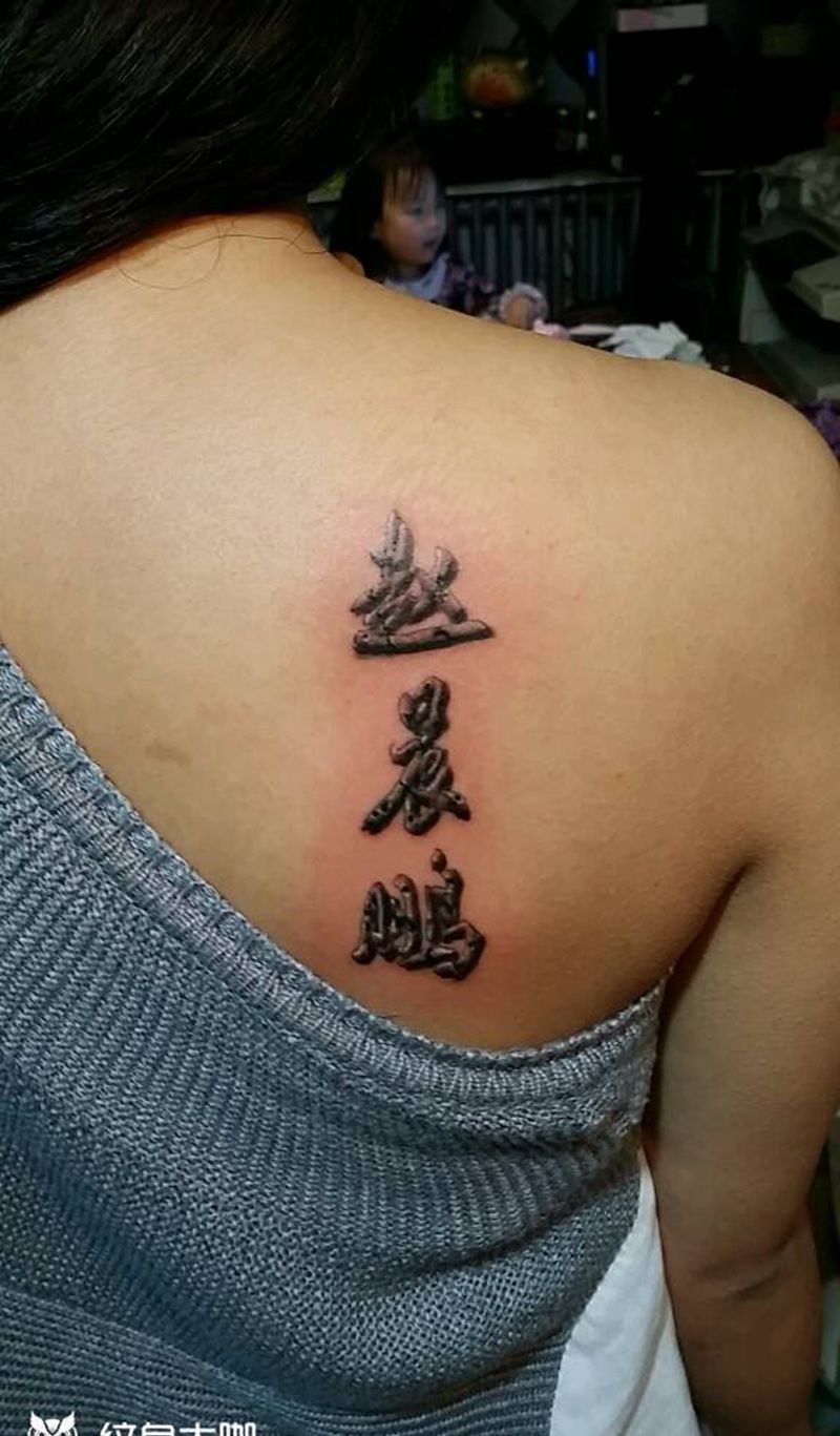 当前位置: 首页 >山西省太原市纹身店-太原翼龙刺青工作室纹身图案>记忆纹身图片_肩部背部字符原创成品纹身图案