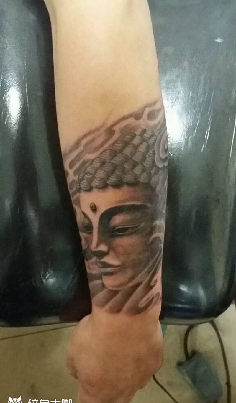 当前位置: 首页 >山西省太原市纹身店-太原翼龙刺青工作室纹身图案>小臂佛头纹身图片_肩部手臂腿部手部传统鬼神宗教纹身图案