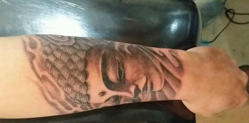 当前位置: 首页 >山西省太原市纹身店-太原翼龙刺青工作室纹身图案>小臂佛头纹身图片_肩部手臂腿部手部传统鬼神宗教纹身图案