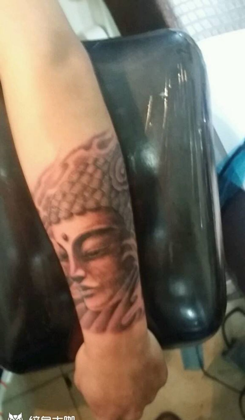 当前位置: 首页 >山西省太原市纹身店-太原翼龙刺青工作室纹身图案>小臂佛头纹身图片_肩部手臂腿部手部传统鬼神宗教纹身图案