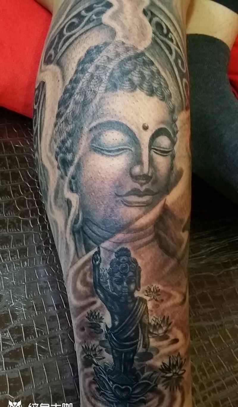 当前位置: 首页 >山西省太原市纹身店-太原翼龙刺青工作室纹身图案>五步莲花,七步成佛纹身图片_肩部手臂腿部传统鬼神宗教成品纹身图案