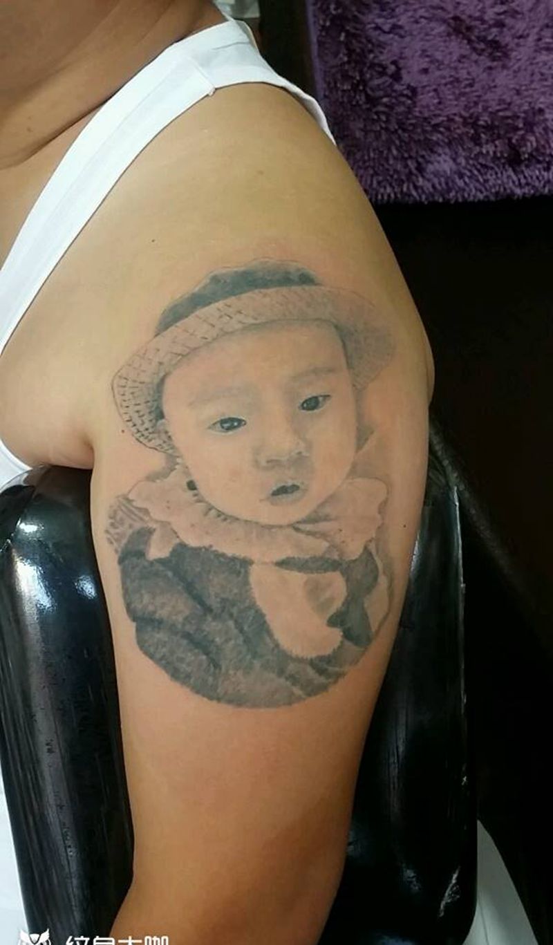 当前位置: 首页 >山西省太原市纹身店-太原翼龙刺青工作室纹身图案>父爱纹身图片_肩部肖像人物原创成品纹身图案