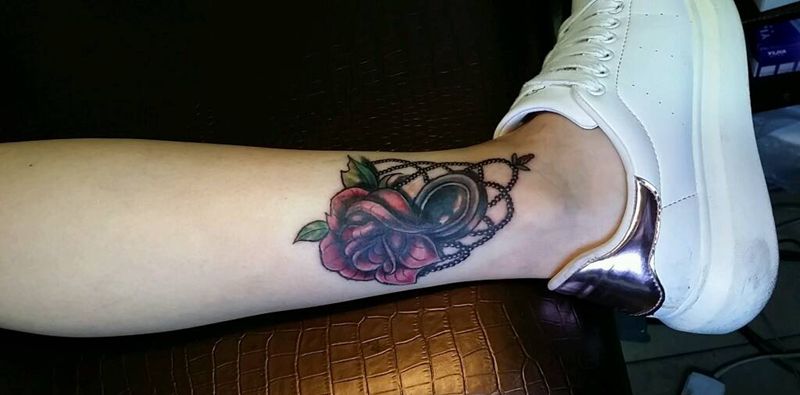 遮盖脚踝纹身作品纹身图片_腿部脚部植物静物成品纹身图案