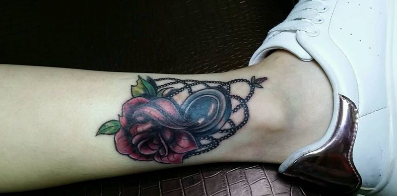 当前位置: 首页 >山西省太原市纹身店-太原翼龙刺青工作室纹身图案>遮盖脚踝纹身作品纹身图片_腿部脚部植物静物成品纹身图案