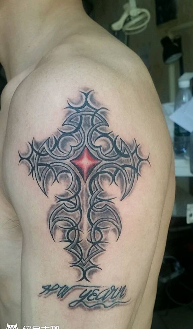 图腾十字架纹身图片_手臂手部成品纹身图案