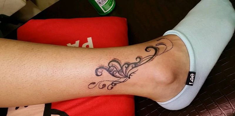 当前位置: 首页 >山西省太原市纹身店-太原翼龙刺青工作室纹身图案>脚踝蝴蝶纹身图片_腿部脚部图腾成品纹身图案