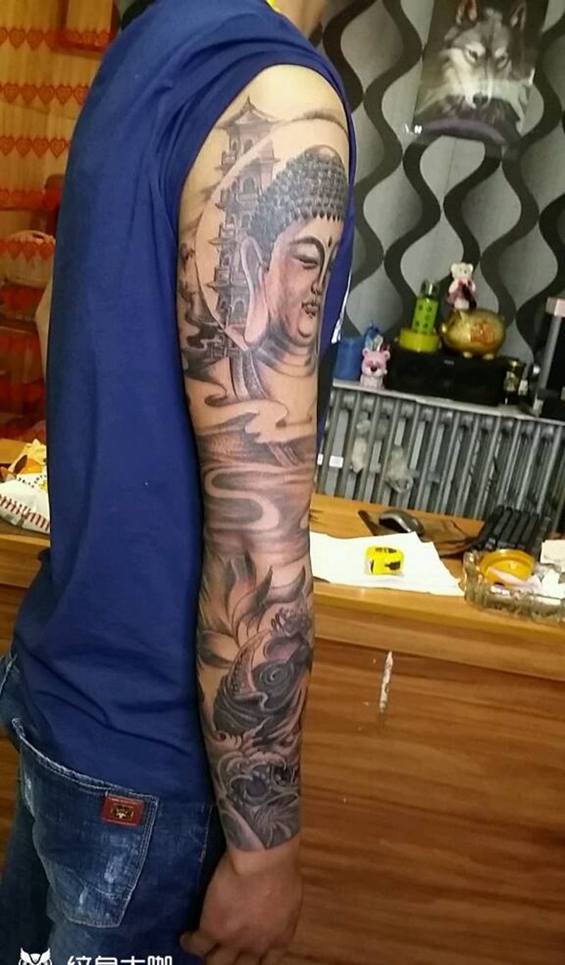 佛头花臂纹身图片_肩部手臂手部传统鬼神成品纹身图案