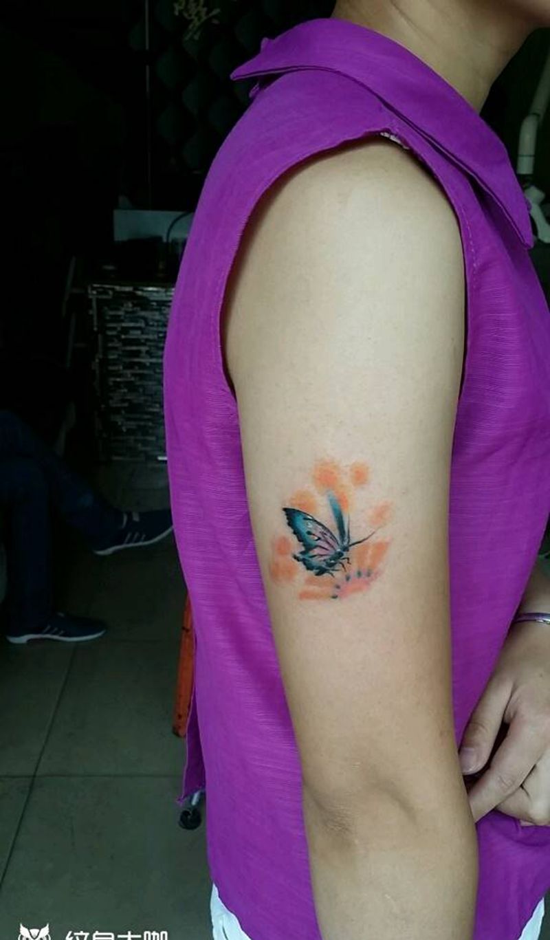 当前位置: 首页 >山西省太原市纹身店-太原翼龙刺青工作室纹身图案>蝴蝶纹身图片_肩部手臂腿部传统清新成品纹身图案