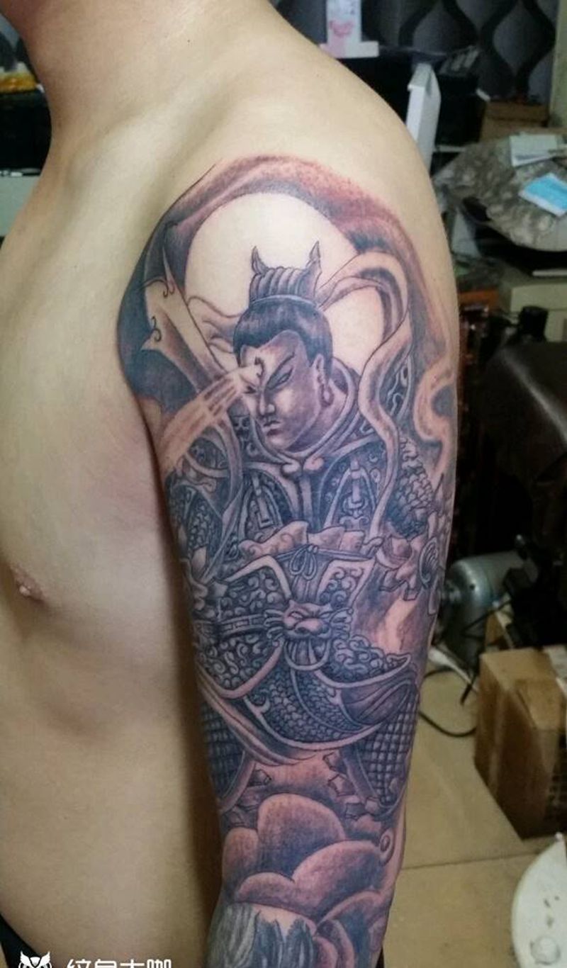 当前位置: 首页 >山西省太原市纹身店-太原翼龙刺青工作室纹身图案>二郎神包大臂纹身图片_手臂传统习俗肖像鬼神纹身图案