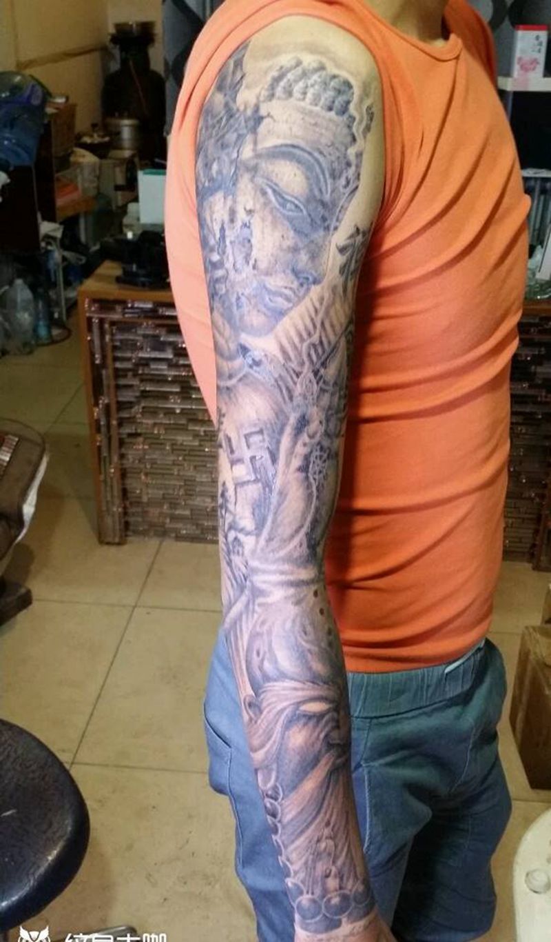 当前位置: 首页 >山西省太原市纹身店-太原翼龙刺青工作室纹身图案>石佛花臂纹身图片_肩部手臂手部传统习俗人物静物鬼神成品纹身图案