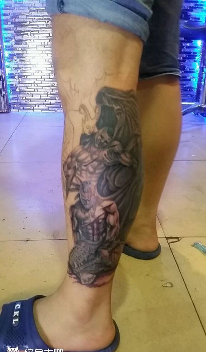 • T网红王老大花腿龙纹身图片_腿部新传统纹身图案