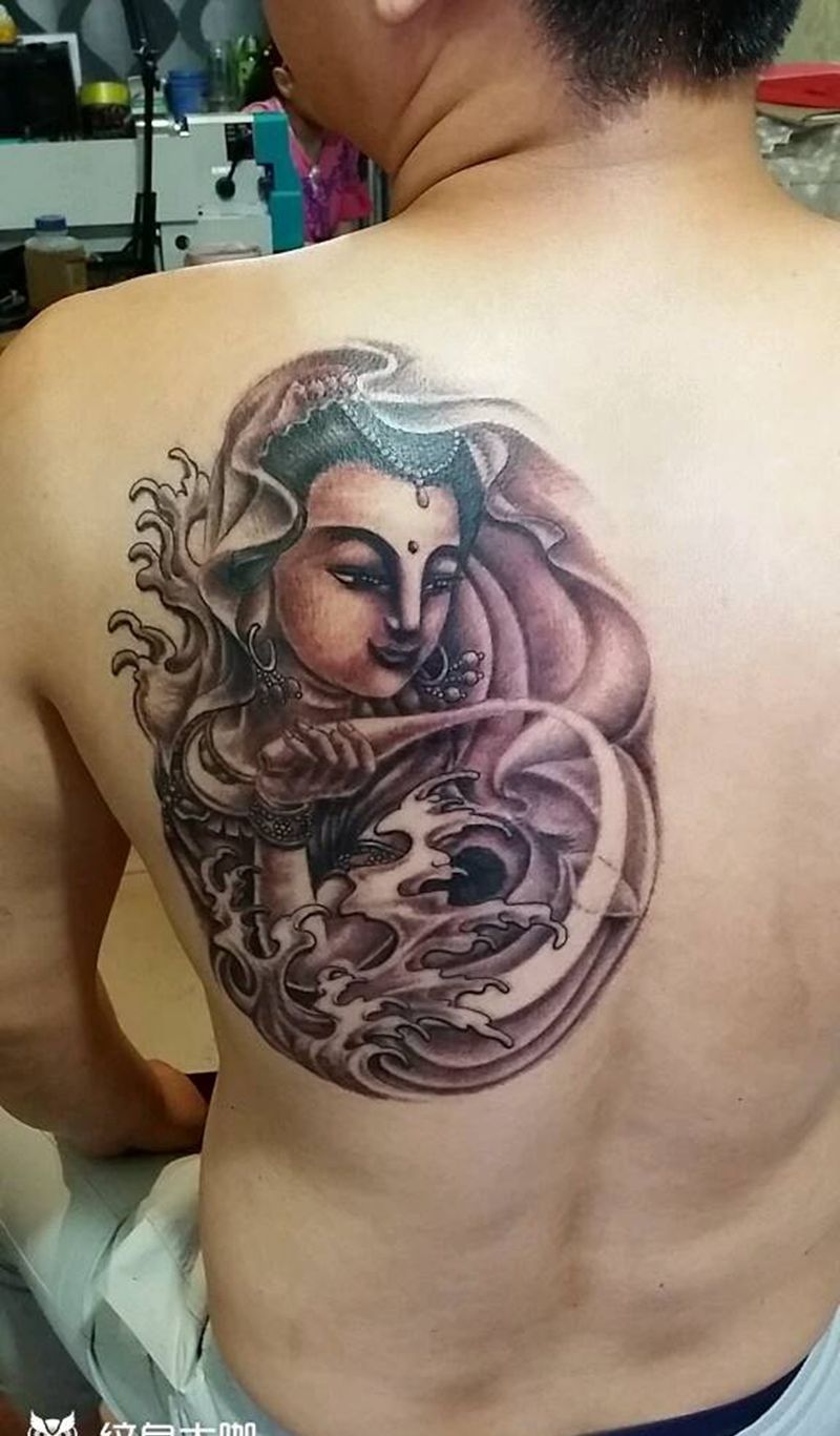 观音菩萨纹身图片_肩部背部传统习俗人物宗教成品纹身图案