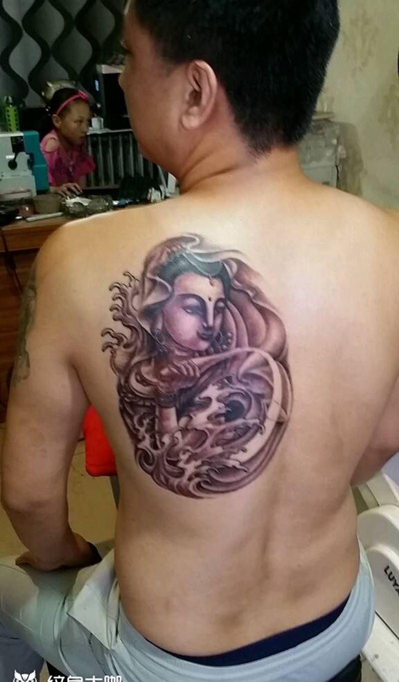观音菩萨纹身图片_肩部背部传统习俗人物宗教成品纹身图案