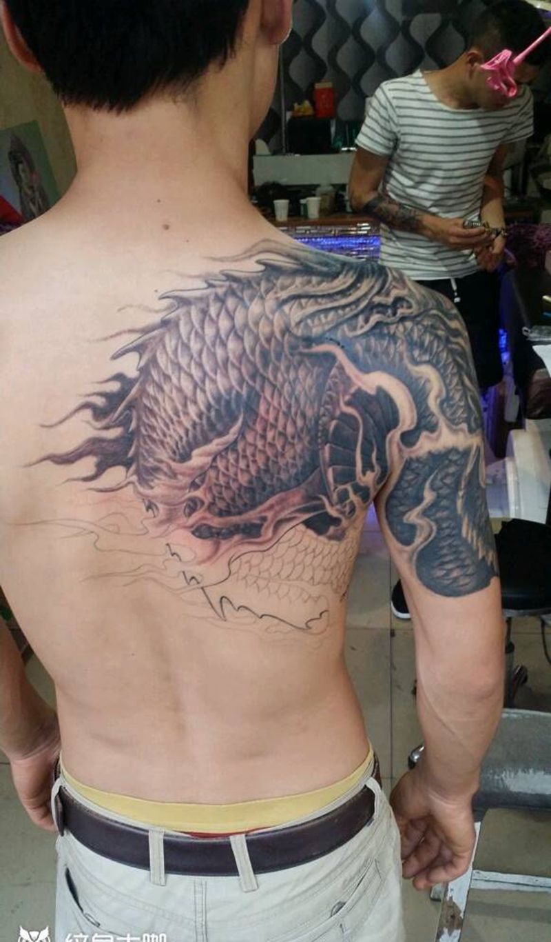 过肩龙纹身图片_肩部背部手臂手部传统习俗纹身图案