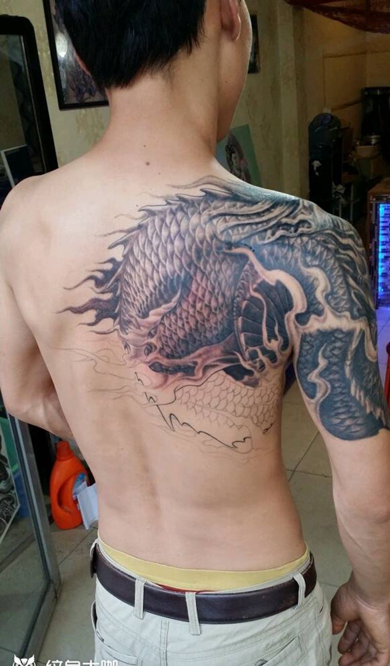 过肩龙纹身图片_肩部背部手臂手部传统习俗纹身图案
