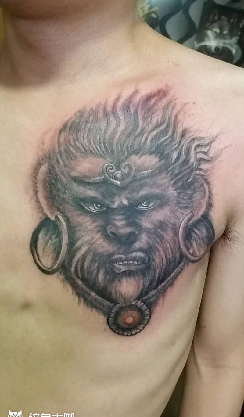 妖猴出世纹身图片_胸部传统鬼神原创成品纹身图案