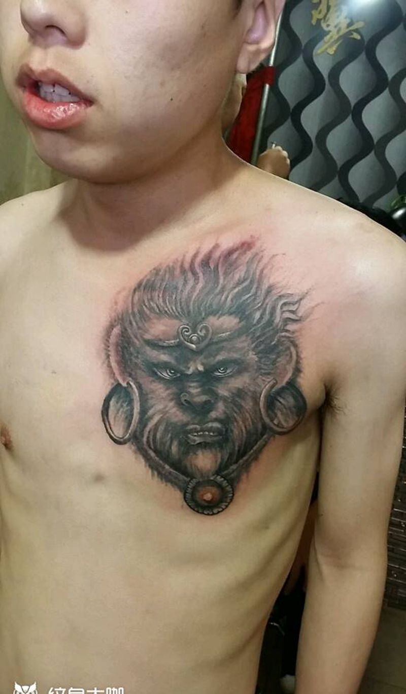 妖猴出世纹身图片_胸部传统鬼神原创成品纹身图案