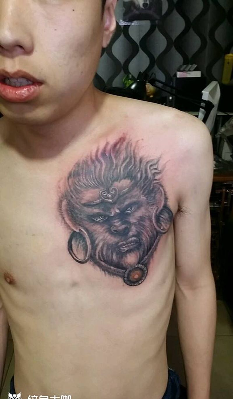 妖猴出世纹身图片_胸部传统鬼神原创成品纹身图案