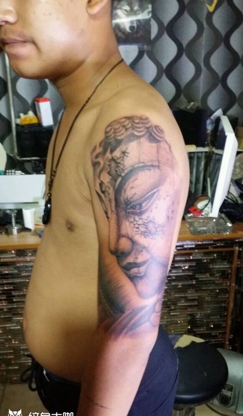 当前位置: 首页 >山西省太原市纹身店-太原翼龙刺青工作室纹身图案>佛纹身图片_手臂人物成品纹身图案