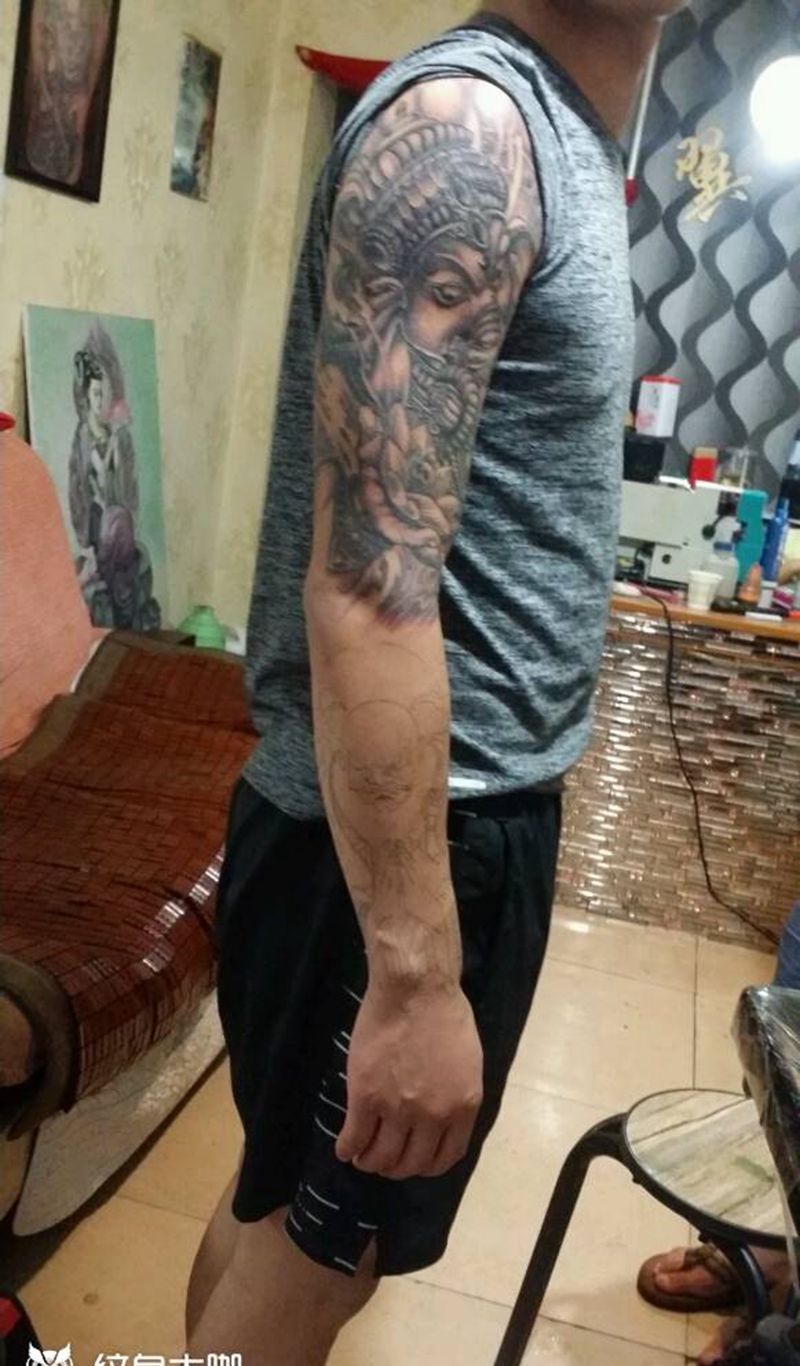 花臂进行中纹身图片_手臂动物人物鬼神纹身图案