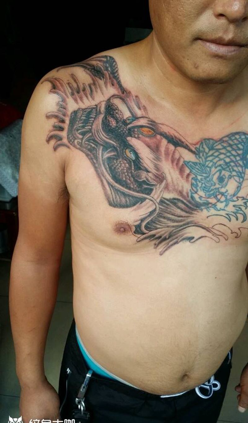 当前位置: 首页 >山西省太原市纹身店-太原翼龙刺青工作室纹身图案>遮盖纹身纹身图片_胸部传统动物鬼神纹身图案
