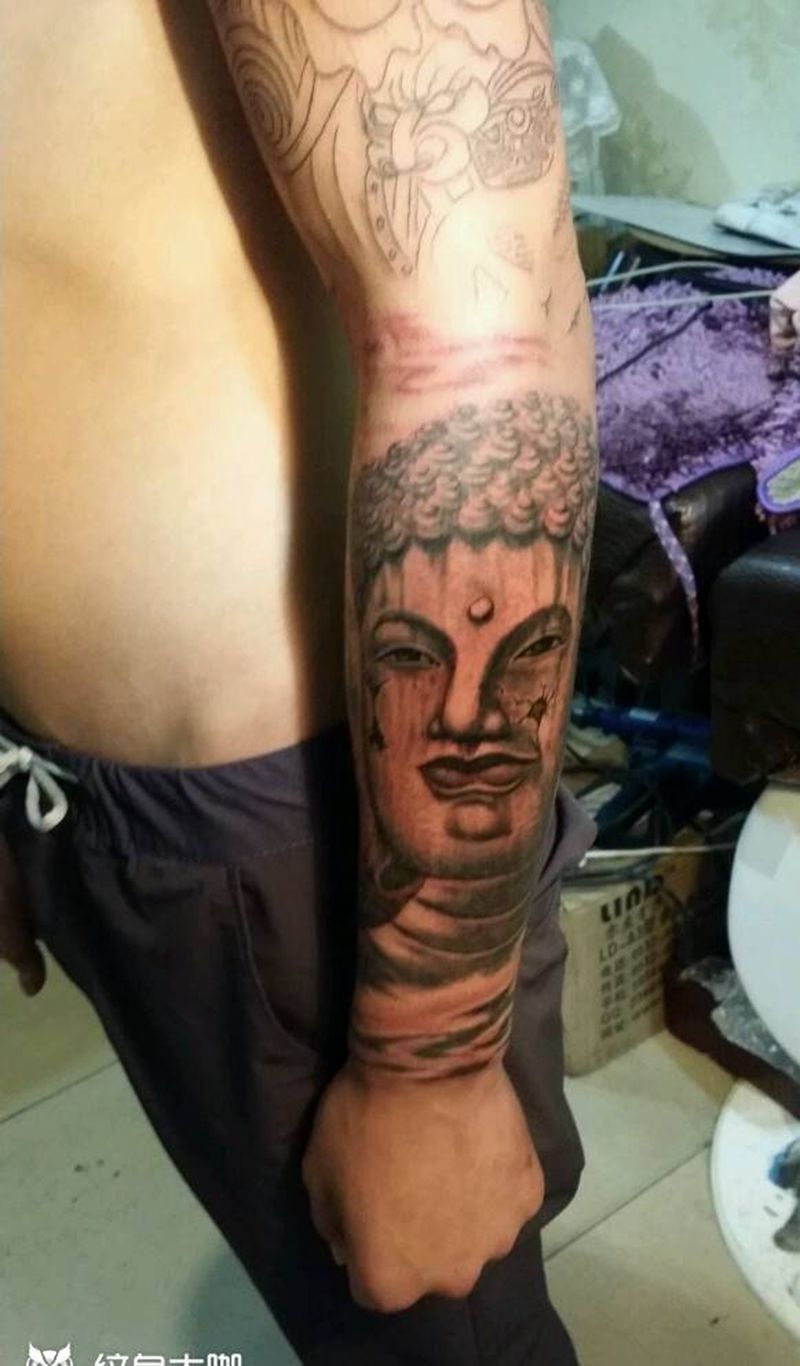 手绘佛头纹身图片_手臂手部人物鬼神宗教原创成品纹身图案