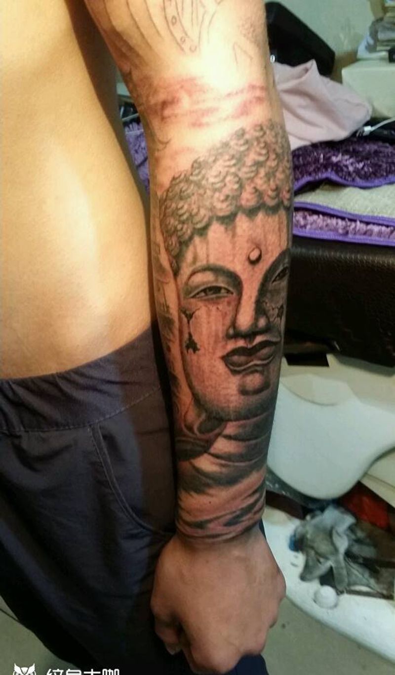 手绘佛头纹身图片_手臂手部人物鬼神宗教原创成品纹身图案