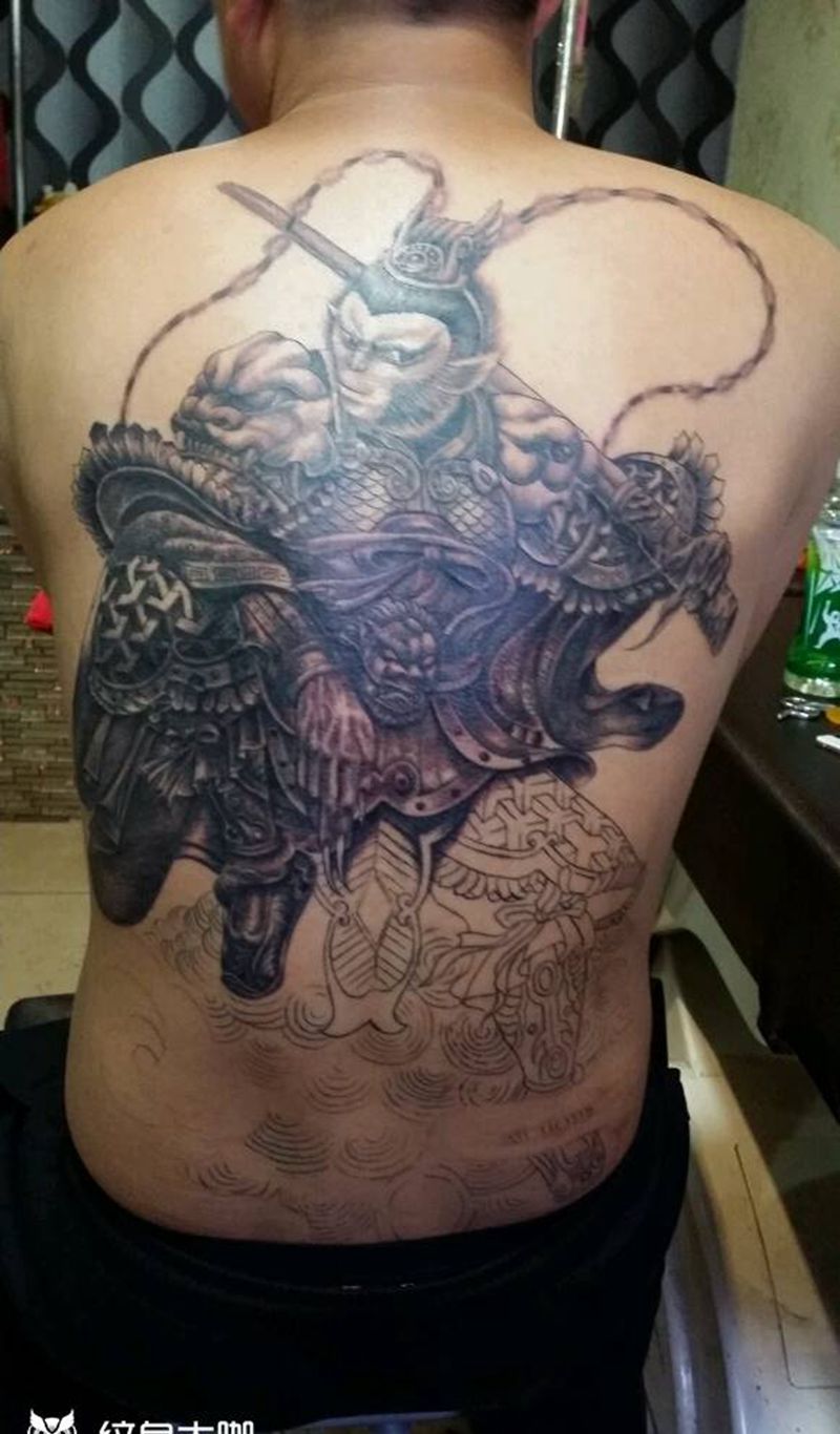 黑灰满背纹身图案