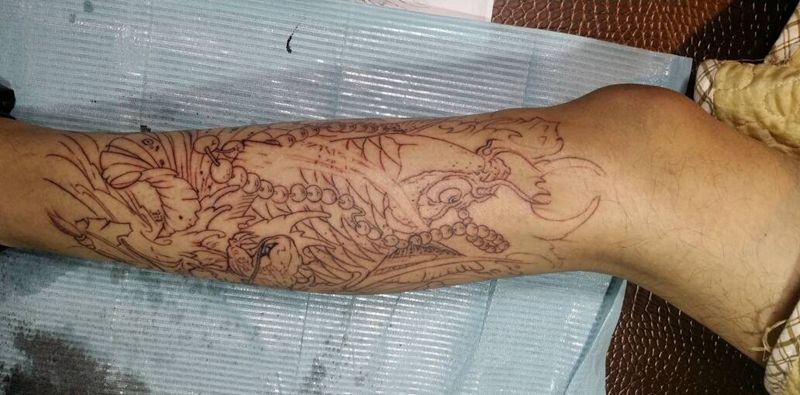 • T网红王老大花腿龙纹身图片_腿部新传统纹身图案