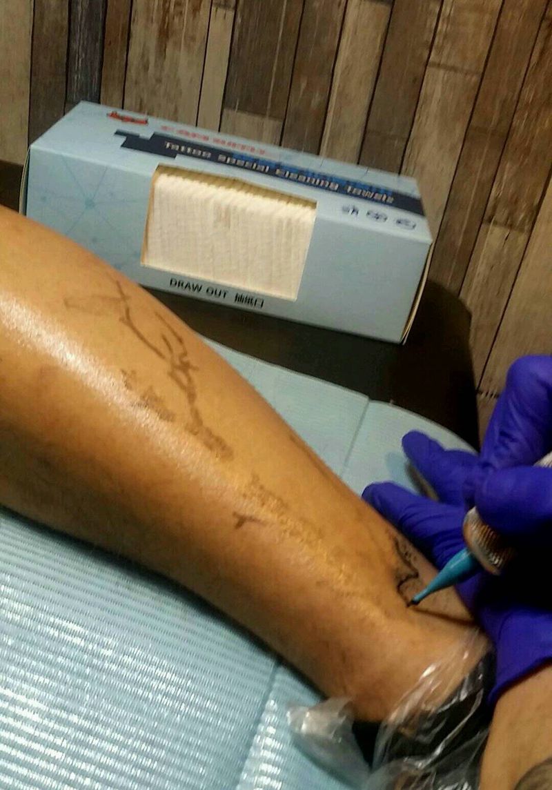 • T网红王老大花腿龙纹身图片_腿部新传统纹身图案