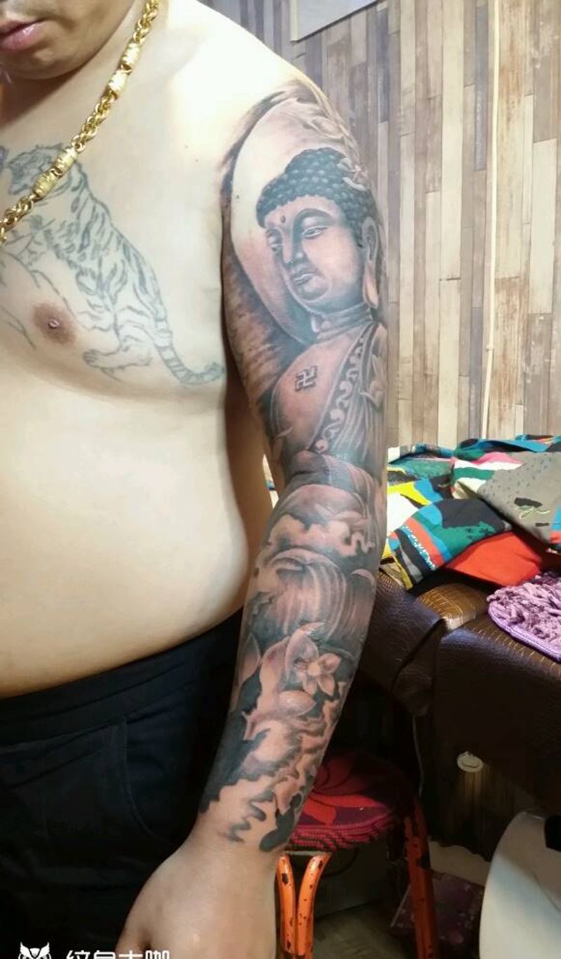当前位置: 首页 >山西省太原市纹身店-太原翼龙刺青工作室纹身图案>释迦摩尼花臂纹身图片_传统人物植物静物宗教成品纹身图案