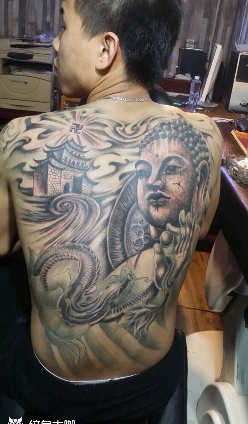 当前位置: 首页 >山西省太原市纹身店-太原翼龙刺青工作室纹身图案>修改纹身未完成纹身图片_背部传统习俗人物鬼神宗教成品纹身图案