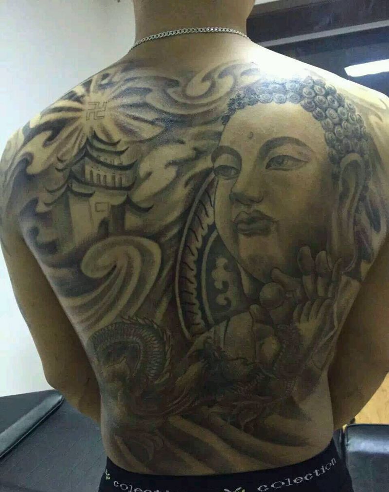 当前位置: 首页 >山西省太原市纹身店-太原翼龙刺青工作室纹身图案>修改纹身未完成纹身图片_背部传统习俗人物鬼神宗教成品纹身图案