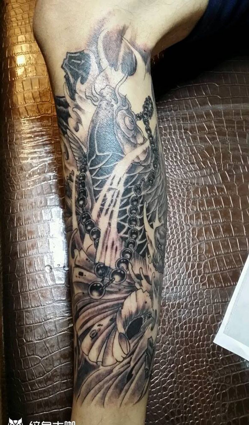 当前位置: 首页 >山西省太原市纹身店-太原翼龙刺青工作室纹身图案>招财锦鲤戏金蟾纹身图片_腿部传统动物成品纹身图案