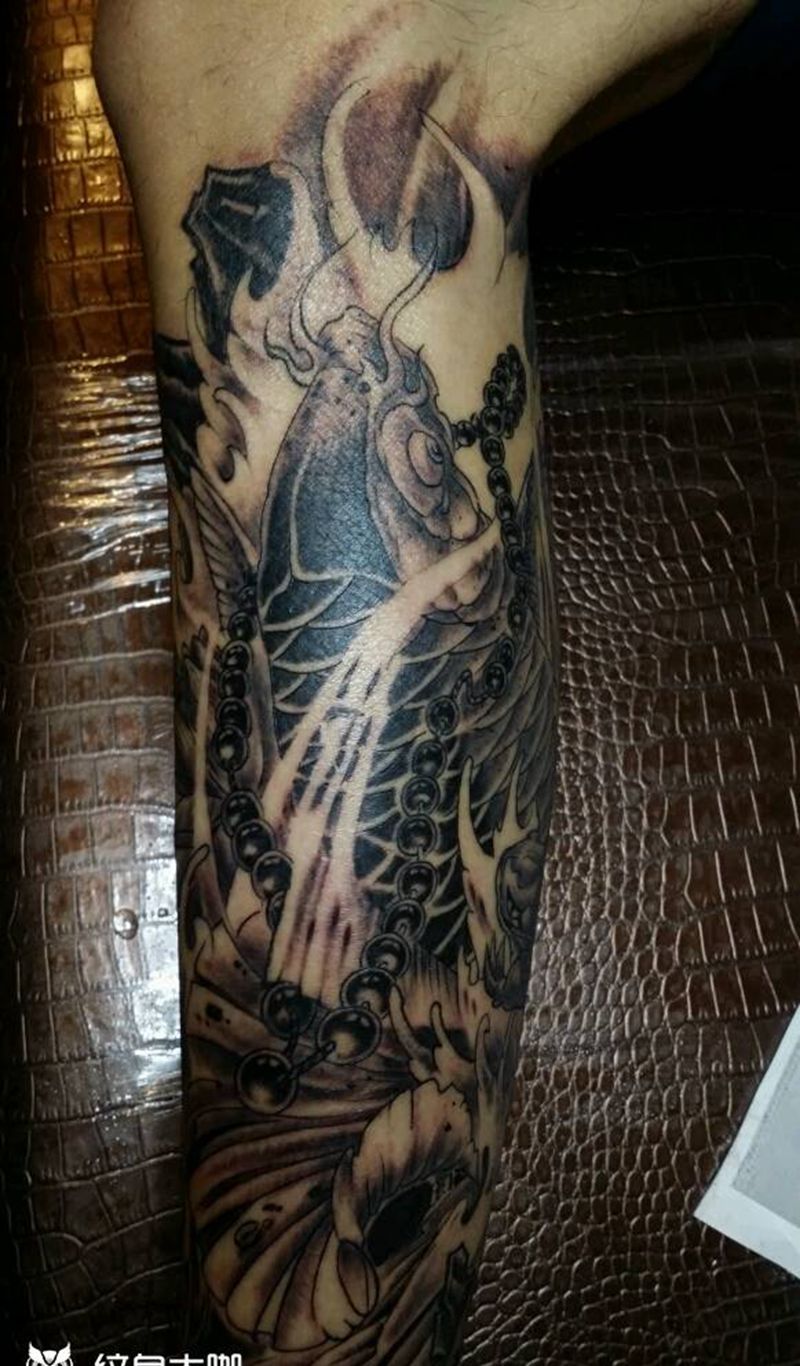 当前位置: 首页 >山西省太原市纹身店-太原翼龙刺青工作室纹身图案>招财锦鲤戏金蟾纹身图片_腿部传统动物成品纹身图案