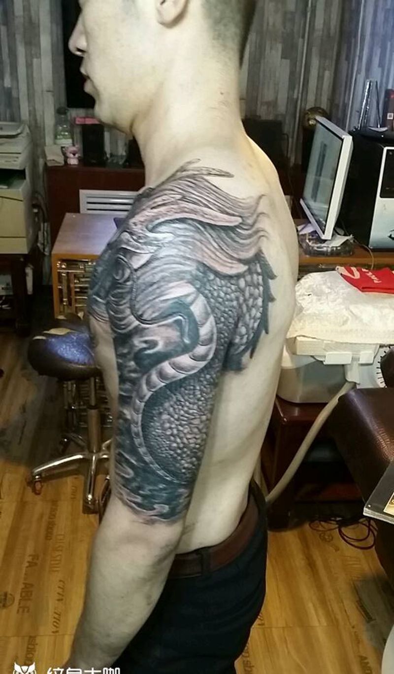 过肩龙遮盖纹身图片_肩部手臂传统动物鬼神原创成品纹身图案