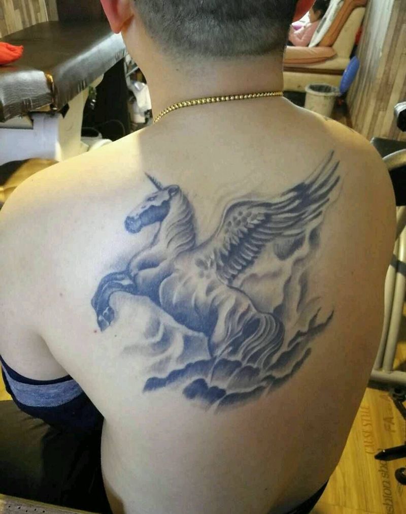 独角兽纹身图片_背部欧美动物成品纹身图案