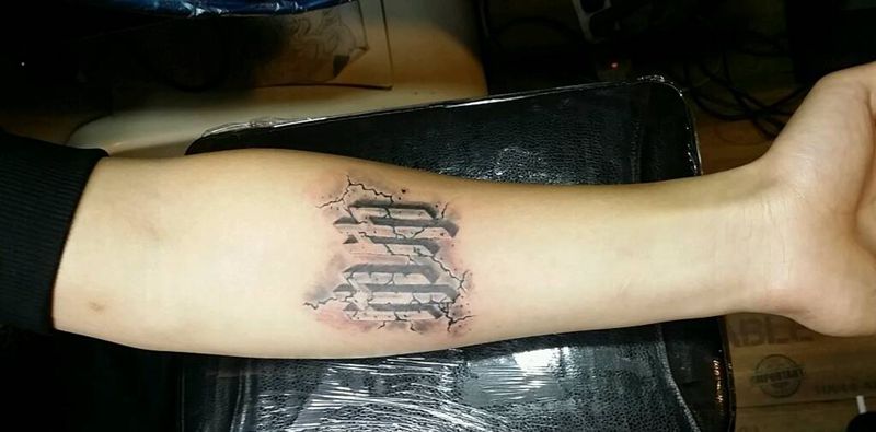 当前位置: 首页 >山西省太原市纹身店-太原翼龙刺青工作室纹身图案>乐队标志纹身图片_手臂传统成品纹身图案