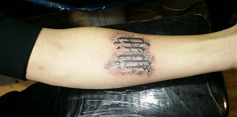 当前位置: 首页 >山西省太原市纹身店-太原翼龙刺青工作室纹身图案>乐队标志纹身图片_手臂传统成品纹身图案