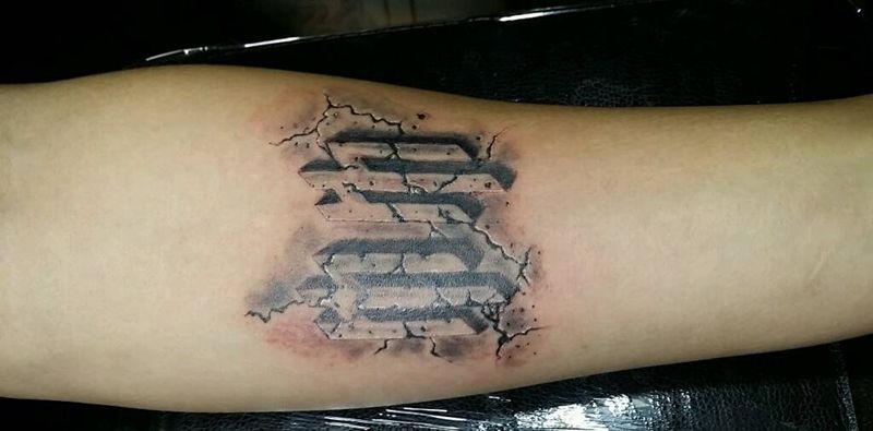 当前位置: 首页 >山西省太原市纹身店-太原翼龙刺青工作室纹身图案>乐队标志纹身图片_手臂传统成品纹身图案