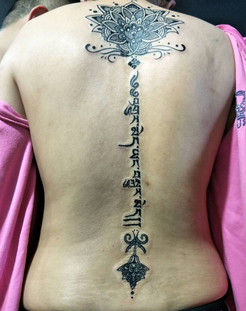曼陀罗梵文纹身图片_肩部背部臀部欧美几何字符成品手稿纹身图案