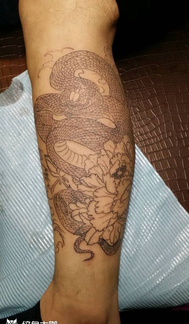 当前位置: 首页 >山西省太原市纹身店-太原翼龙刺青工作室纹身图案>富贵牡丹纹身图片_腿部传统动物静物手稿纹身图案