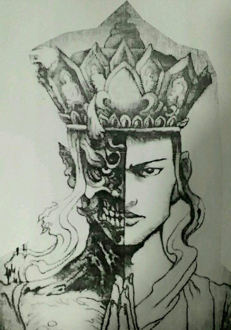 当前位置: 首页 >山西省太原市纹身店-太原翼龙刺青工作室纹身图案>一念之间纹身图片_肩部胸部手臂传统人物鬼神成品手稿纹身图案